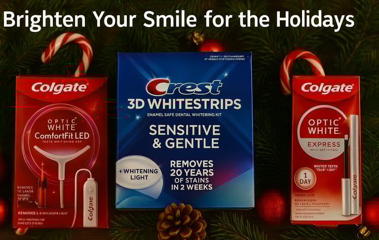 Colgate whitening toothpastes (peroxide or silica polish) remove surface stains and help prevent new discoloration. Pairing toothpaste + a whitening mouthwash supports fresh breath and keeps your “holiday smile” brighter longer.
